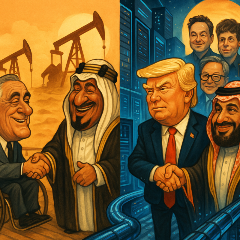 They’re there to support Trump laying the groundwork for the next global “energy” pact, one that swaps barrels of oil for racks of AI chips.