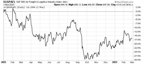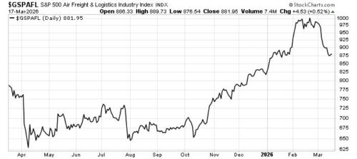 The market recognized this problem, as you can see in this chart of the S&P 500 Air Freight and Logistics Industry Index: