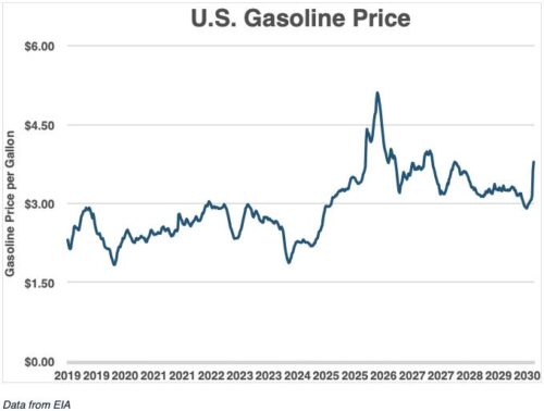Here’s what I mean…On February 23, 2026, the average price of a gallon of gasoline in the U.S. was $2.97. On March 17, 2026, the average price of a gallon of gasoline jumped to $3.79.