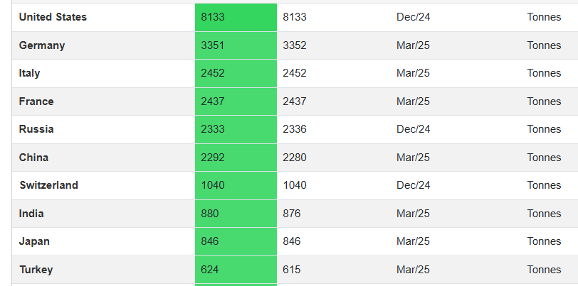 The Top 10 Gold Reserve Holdings By Country