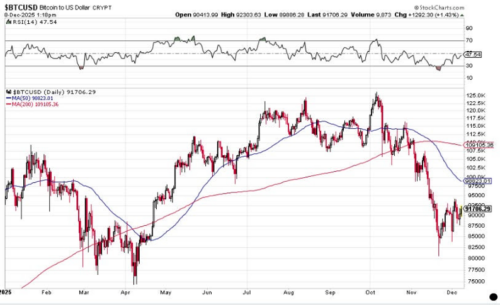 The S&P 500 has climbed more than 16% in 2025, while Bitcoin is down 3% — the first time since 2014 that stocks have rallied while the token is down, according to data compiled by Bloomberg.